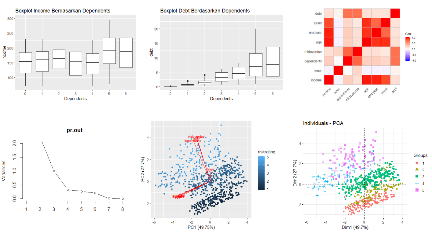 In this reduction dimension, I learned about the theory of principal component analysis and exercises its application to credit scoring. Principal component analysis is a technique used to reduce the number of unnecessary variables as input to the algorithm without compromising the quality of the prediction.